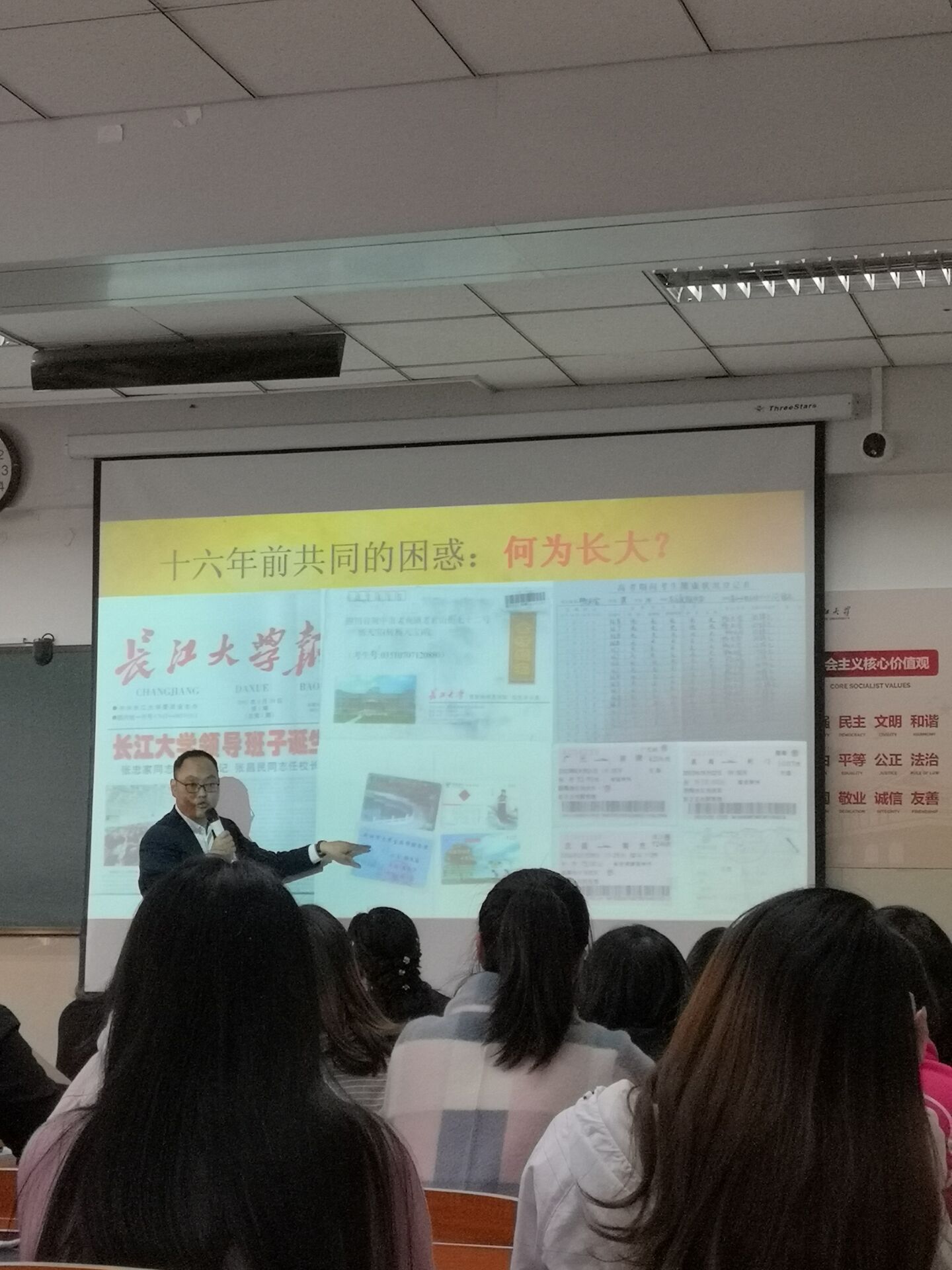 (学生记者杨晓玲)4月12日下午5时许,永利官网2007届毕业生杨天宝在12教203教室为2016级学生做了就业指导交流会,杨天宝以自己的以自己的求学、求职及职场经验与同学们进行了分享与交流。本次交流会党委副书记曹阳红做主持,2016级全体学生参加。