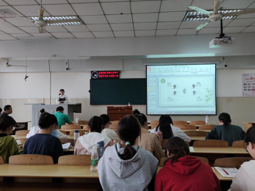 紧接着,盛老师对学院近两年来的就业、考研情况进行分析,告诉学生要理性选择考研、就业、考公务员的发展道路,做好职业生涯规划。