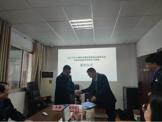 3月9日上午,77779193永利官网与荆州市城市管理综合执法支队共建法治教育培训实习基地挂牌签约仪式顺利举行。永利官网院长李华成、党委副书记胡红霞、杨春磊教授、杨琳丽老师、市城管支队支队长吴静、副支队长田辉、郭清、张红军出席了本次仪式。