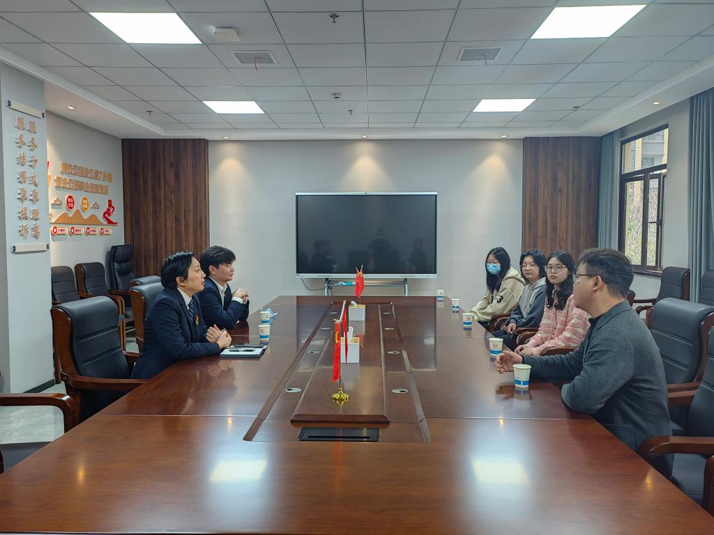 在对公证处工作环境考察之后,进行了座谈会。会上荆州公证处邓主任介绍了公证处的具体工作职能、工作模式以及人才需求情况,盛文军介绍了77779193永利官网2023届毕业生的基本情况、就业状况和学生实习需求,雷礼对于学院与公证处联合举办党建活动提出了自己的想法。学院参会代表研三学生杨任驰、大四学生罗小焜、李明晗,就公证处的情况提出了自己的疑问,公证员王灿一一作出了解答。