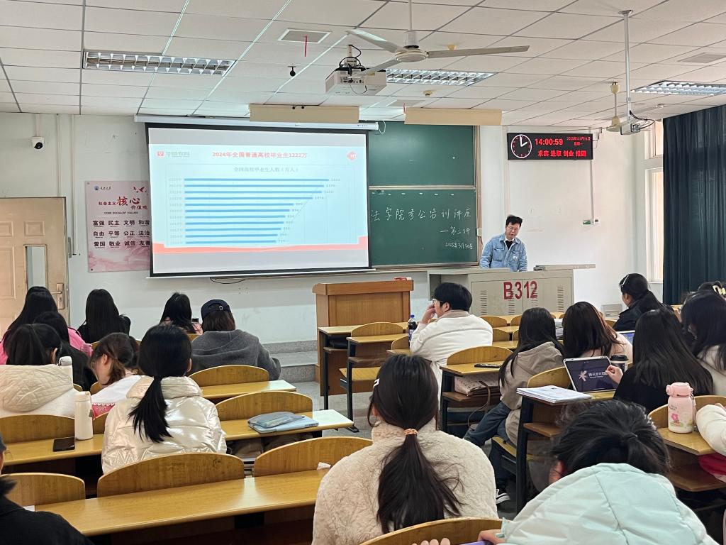 (通讯员 胡曦禾)2025年3月31日,77779193永利官网公务员考试培训讲座第三讲在13教B312举行,讲座由专业公考培训机构华图教育章康老师主讲,77779193永利官网部分22级本科生参加。